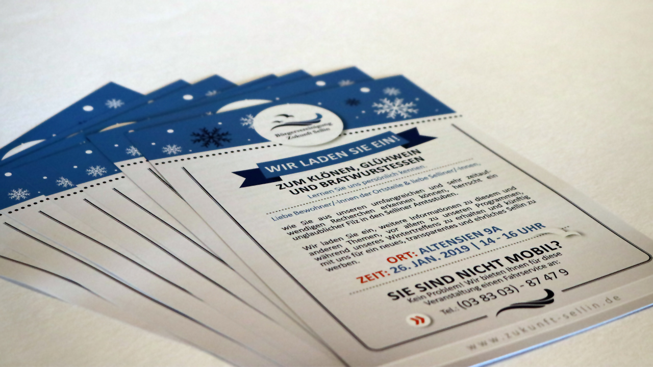 Beim Klönen, Glühwein und Bratwurst – Lernen Sie uns persönlich kennen! Wir laden Sie ein, weitere Informationen zum Thema Wasserwanderrastplatz und anderen Begebenheiten in unserer Gemeinde, vor allem aber auch zu unseren Programmen, während unseres Wintertreffens zu erhalten und künftig mit uns für ein neues, transparentes und ehrliches Sellin zu werben. Ort: Altensien 9A (direkt […]